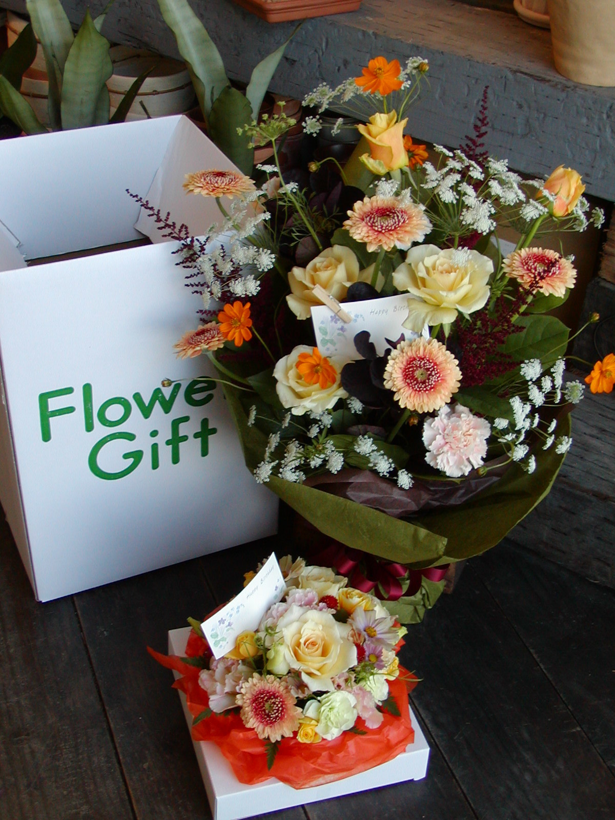 お花のほかに、お手紙やプレゼントなどございましたらご一緒に箱詰めいたします。